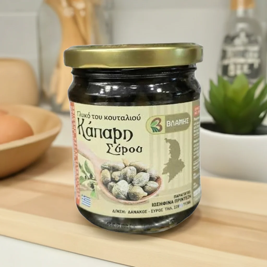 Caper Spoon Sweet is a unique taste experience that combines the spicy taste of capers with the gentle sweetness of syrup. The traditional preparation process, which includes slow cooking and the addition of natural syrup, guarantees the preservation of the caper's nutrients and gives the dessert a smooth and balanced taste.